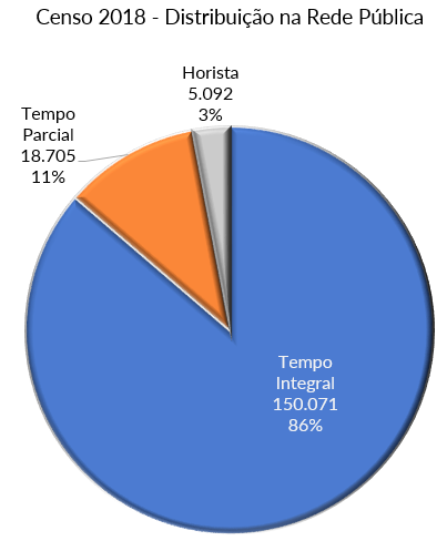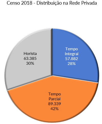 Tempo integral inclui docentes de 40 horas com ou sem dedicação exclusiva. É o regime mais utilizado na Rede Pública e menos empregado nas Rede Privada.