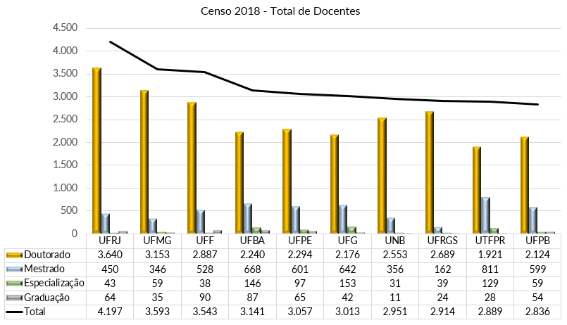 Universidades Federais com maior quantidade de docentes com doutorado
