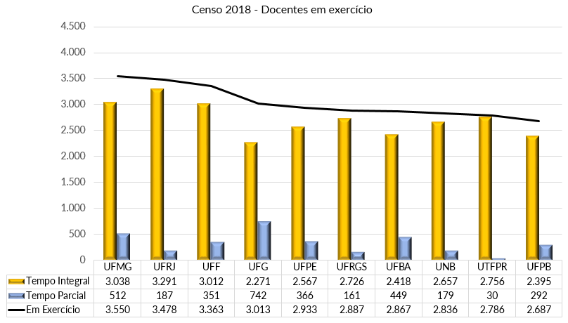 (**) Docentes em exercício (ativos) inclui substitutos e visitantes e não considera os docentes afastados