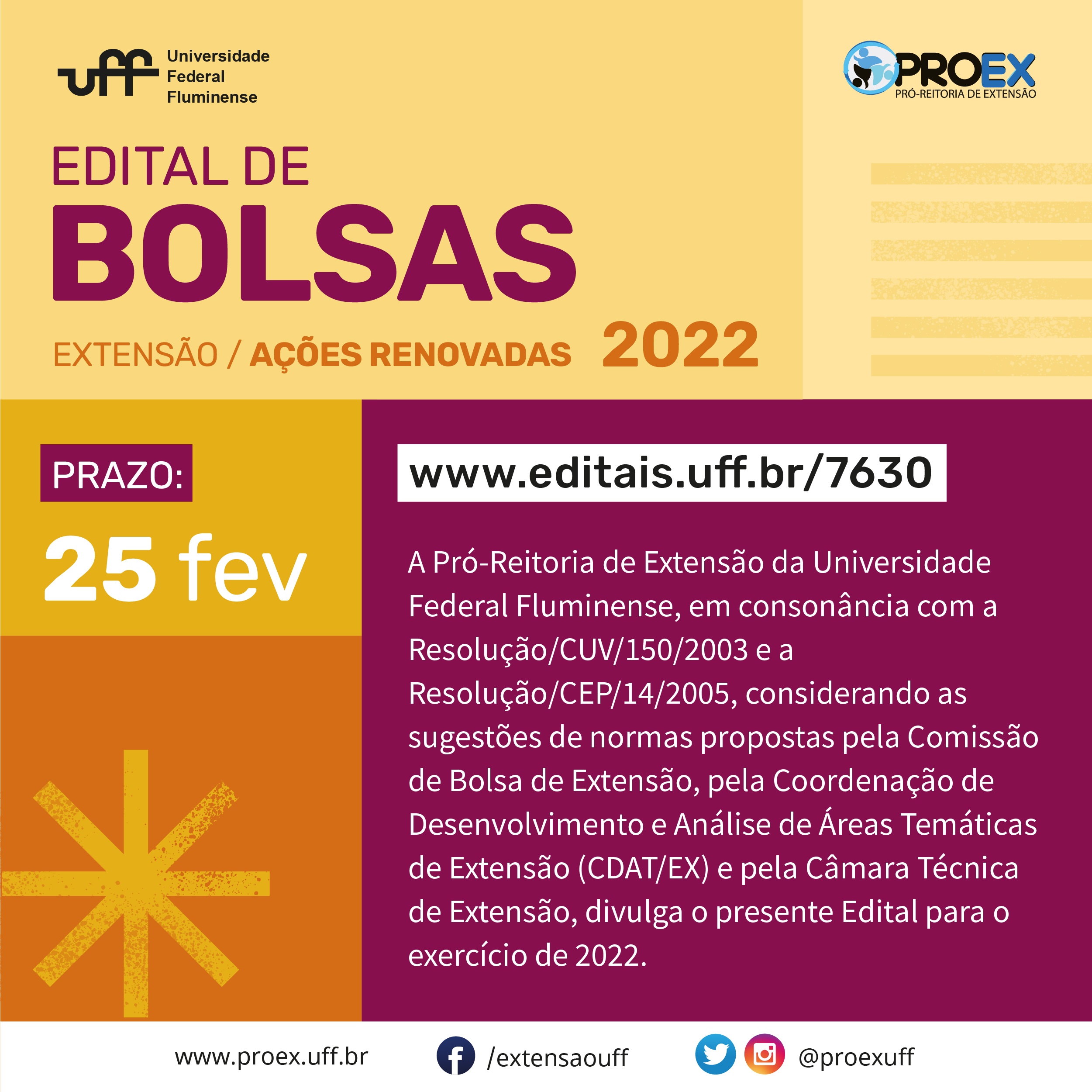 #ProexEmAção atenção coordenadores extensionistas e membros de ações de extensão da UFF para o prazo do EDITAL DE BOLSA DE EXTENSÃO – AÇÕES RENOVADAS – 2022