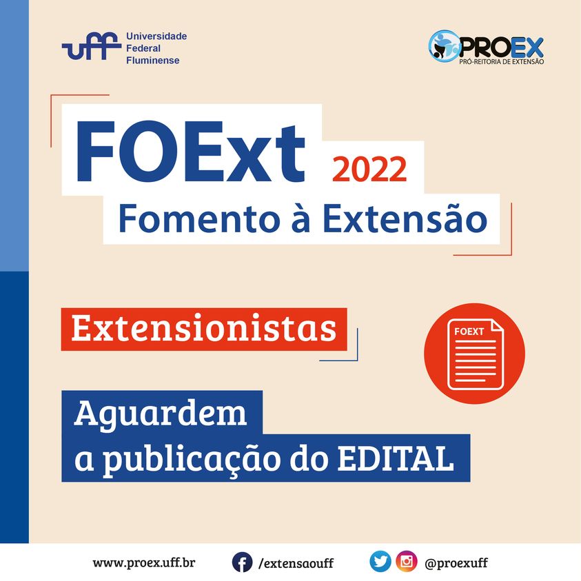 PROEX divulga que em breve será publicado o edital de Fomento à Extensão. Aguardem!