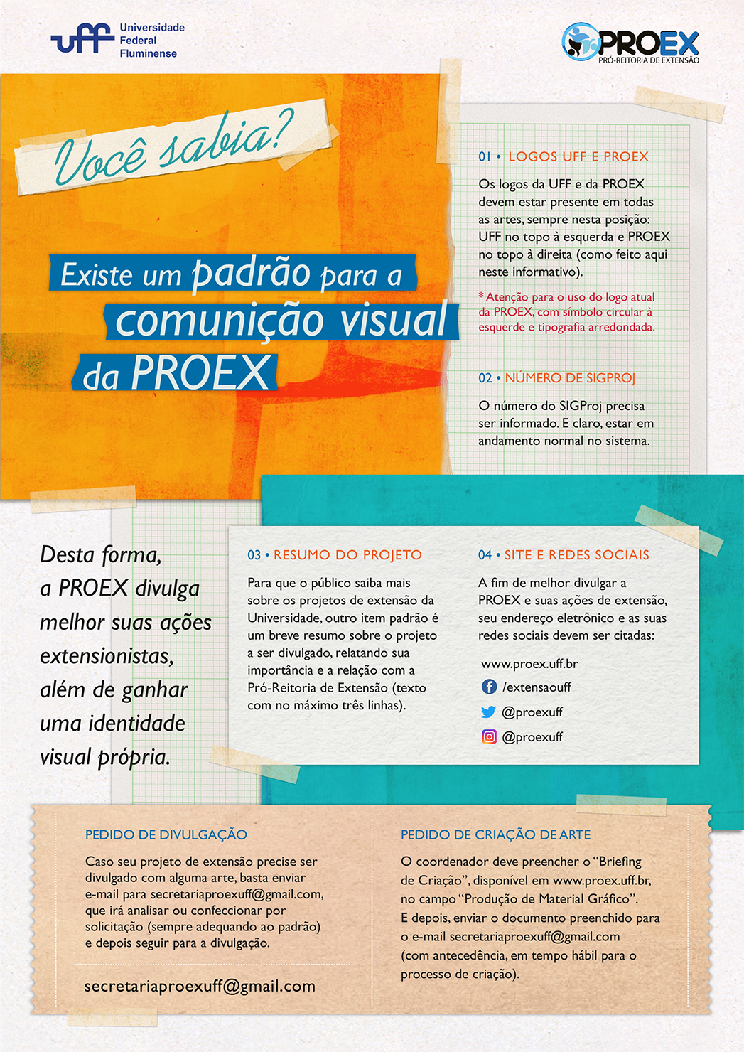 PROEX informa padronização para solicitação de arte gráfica de divulgação das ações de extensão.
