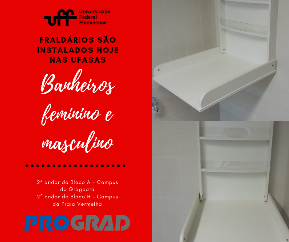Para atender às demandas de mães e pais da UFF, a Prograd adquiriu quatro fraldários que foram instalados hoje nas UFASAS do Campus do Gragoatá (Bloco A) e Praia Vermelha (Bloco H).