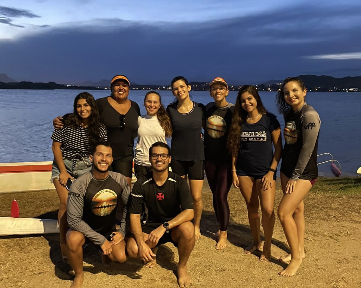 O projeto de extensão Ahonui: cultivando a saúde física e mental com a canoa polinésia, coordenado pelos professores Daniel Arruda Nascimento (UFF), Karine da Silva Verdoorn (UFRJ) e pelo clube Crispy Koa Va’a, adotou para este ano um horário de final de tarde para o oferecimento da prática da canoagem havaiana à comunidade acadêmica do município de Macaé, incluindo-se nela estudantes, servidores administrativos e professores da nossa universidade, da Universidade Federal do Rio de Janeiro e da Faculdade Municipal, instituições parceiras que compartilham os espaços comuns da Cidade Universitária de Macaé.