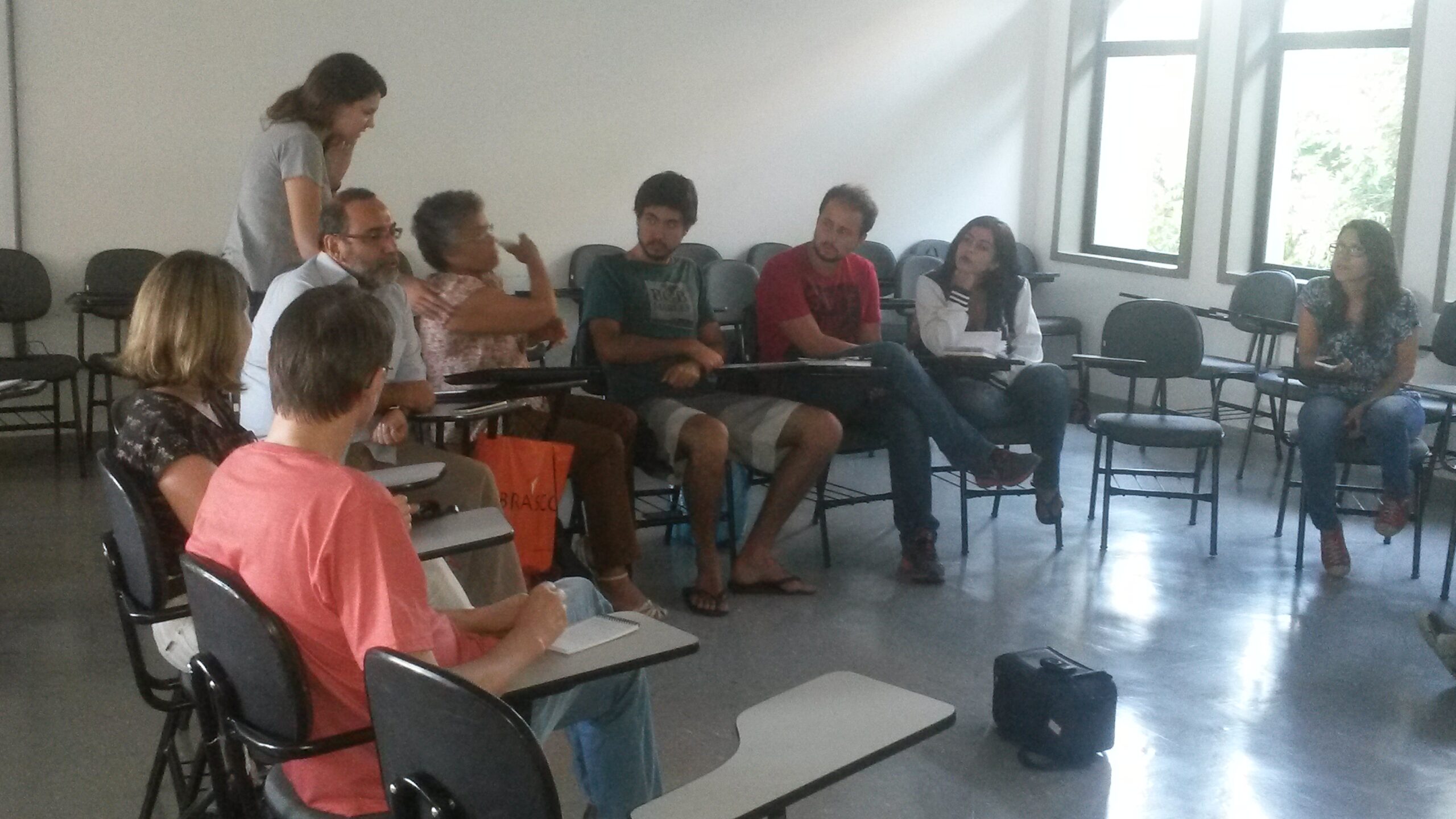 Em mais um dia de debates do Seminário Recherche Avec, os participantes puderam conhecer o trabalho realizado pela Liga Multiprofissional de Saúde da Família, um projeto vinculado ao Instituto de Saúde Coletiva (ISC), da Universidade Federal Fluminense. Desde janeiro de 2015, estudantes de graduação, mestrado e professores das áreas de Medicina, Enfermagem e Psicologia vem atuando junto às comunidades Ocupação 6 de Abril (Niterói), Cano Furado e Jardim Catarina (ambas em São Gonçalo). As famílias destas comunidades são ligadas ao Movimento dos Trabalhadores Sem Teto (MTST). O diretor do ISC, Aluísio Gomes da Silva Júnior, é o coordenador da Liga e responsável pela orientação do projeto como um todo.