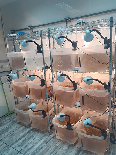 Os experimentos, realizados em condições controladas de temperatura, salinidade, oxigênio dissolvido e luminosidade, são desenvolvidos em aquários com juvenis de peixes e macroalgas marinhas. “Trabalhamos com aquários de 50 litros e peixes de dois a cinco centímetros. Mantemos de 10 a 15 peixes por aquário. No caso das macroalgas, avaliamos seu papel biofiltrador usando diferentes densidades, seja em porcentagens baixa, intermediária e elevada. As macroalgas são cultivadas no mesmo aquário dos peixes”, detalhou.