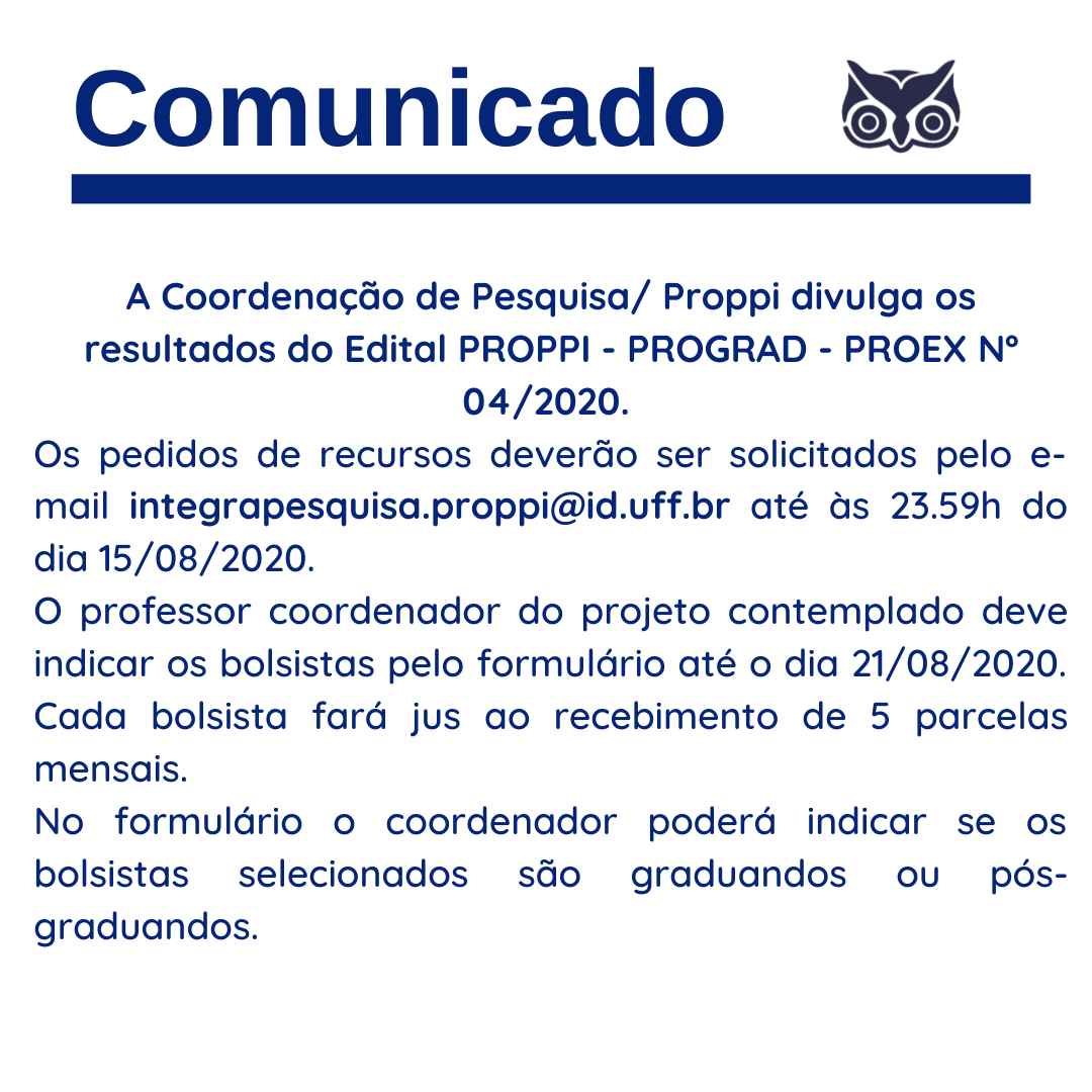 Resultados do Edital PROPPI – PROGRAD – PROEX Nº 04/2020.