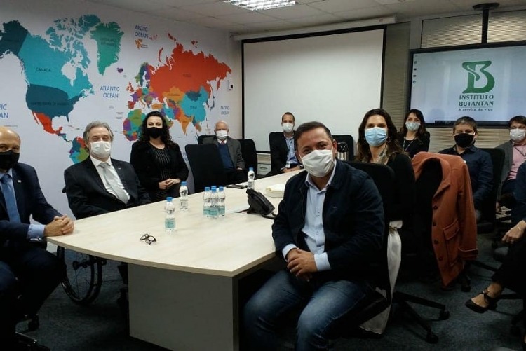 Reunião do reitor da UFF junto ao presidente do Instituto Butantan, Dimas Covas, com toda a governança do Instituto, e do Prefeito Municipal de Niterói, Rodrigo Neves e equipe para avançar na parceria da testagem da vacina contra a Covid-19, no estudo coordenado pelo Butantan.