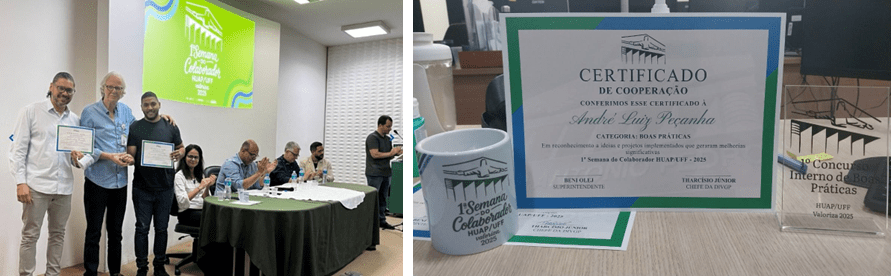 O HUAP/UFF lançou, em outubro de 2025, o edital de Boas Práticas de Gestão, que premiou ideias e projetos implementados com resultados comprovados. Entre oito projetos inscritos, o Sistema de Padronização Hospitalar foi o vencedor da categoria principal, em cerimônia realizada no dia 6 de novembro de 2025, destacando-se pelos impactos positivos gerados na eficiência dos processos internos e na qualidade dos serviços prestados.
