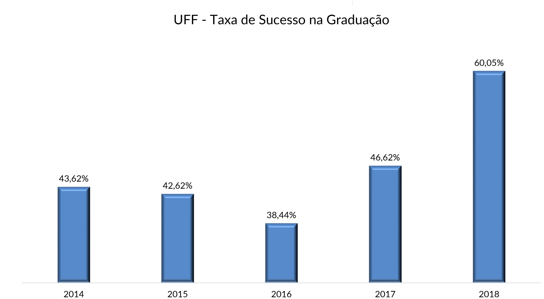 A Taxa de Sucesso na Graduação – TSG é um dos principais indicadores do Tribunal de Contas da União – TCU. A partir de 2002, a TSG passou a ter publicação obrigatória nos Relatórios de Gestão das Universidades Federais. Uma TSG de 60% revela que para cada 60 alunos que concluiram em 2018, foram necessários o ingresso de 100 alunos em anos anteriores onde a quantidade de anos depende da duração dos cursos que é definida nas orientações do TCU. |