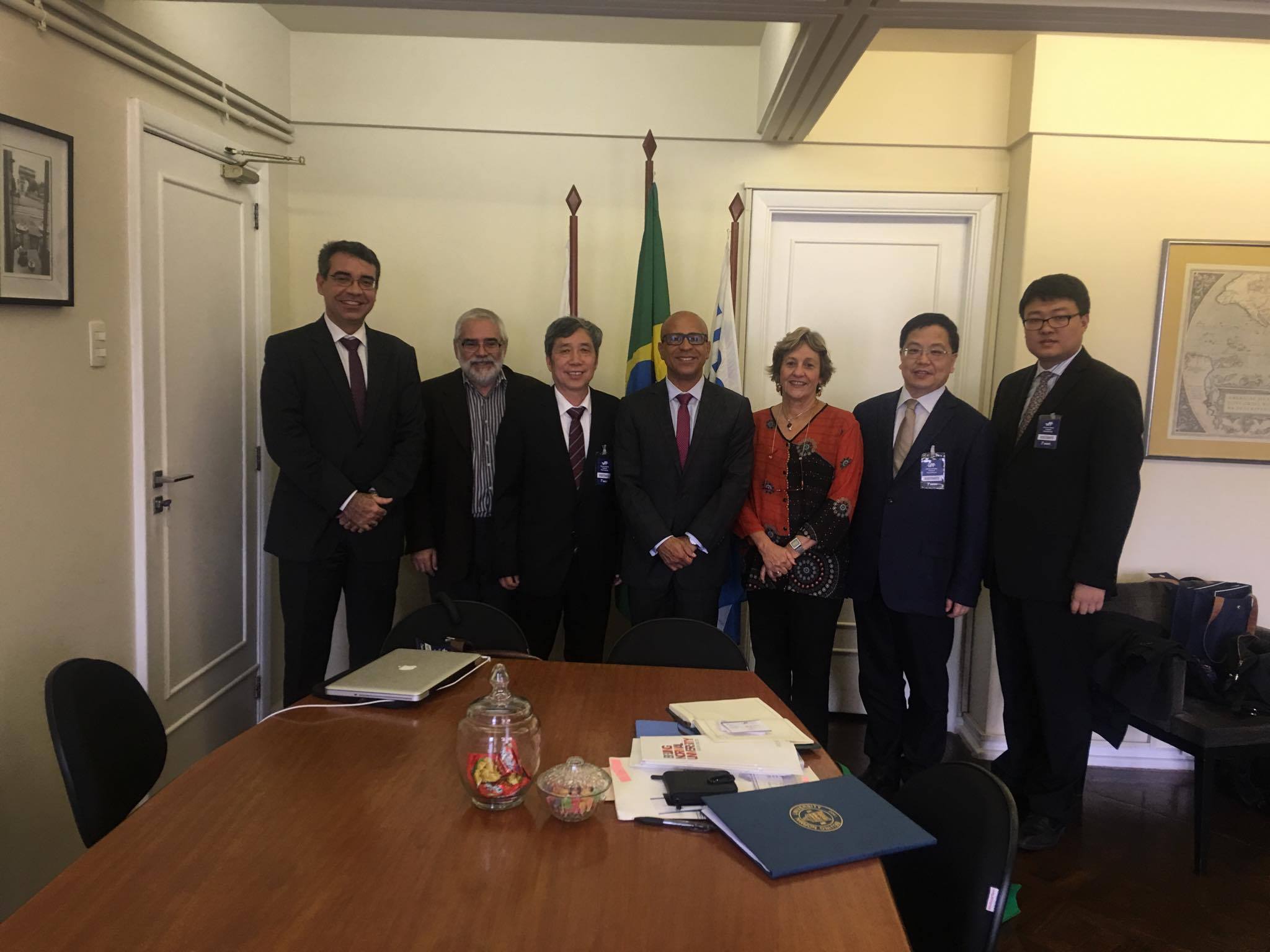 O Reitor da Universidade Federal Fluminense, Sidney Melo, se reuniu com representantes da Beijing Normal University, da China, na manhã dessa terça-feira (7), para a assinatura de um acordo bilateral entre as duas instituições. Também estiveram presentes na reunião, a Secretária de Relações Internacionais da UFF, Dra. Livia Reis; o coordenador do Centro de Estudos do BRICS na UFF; Prof. Eduardo Gomes; o Presidente da Beijing Normal University, Dr. Lu Jiansheng; o Vice Presidente da Beijing Normal University, Chen Guangju e o Diretor de Relações Internacionais da Beijing Normal University, Liu Tao.