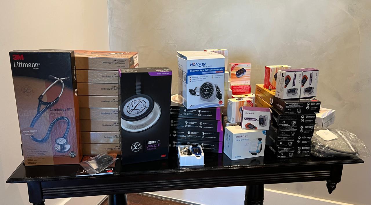 A entrega foi realizada pelo reitor e pelo vice-reitor, professor Fabio Barboza Passos, à coordenadora da CASQ, Dra. Fátima Loureiro. Entre os equipamentos recebidos estão estetoscópios, oxímetros e medidores de pressão, entre outros.