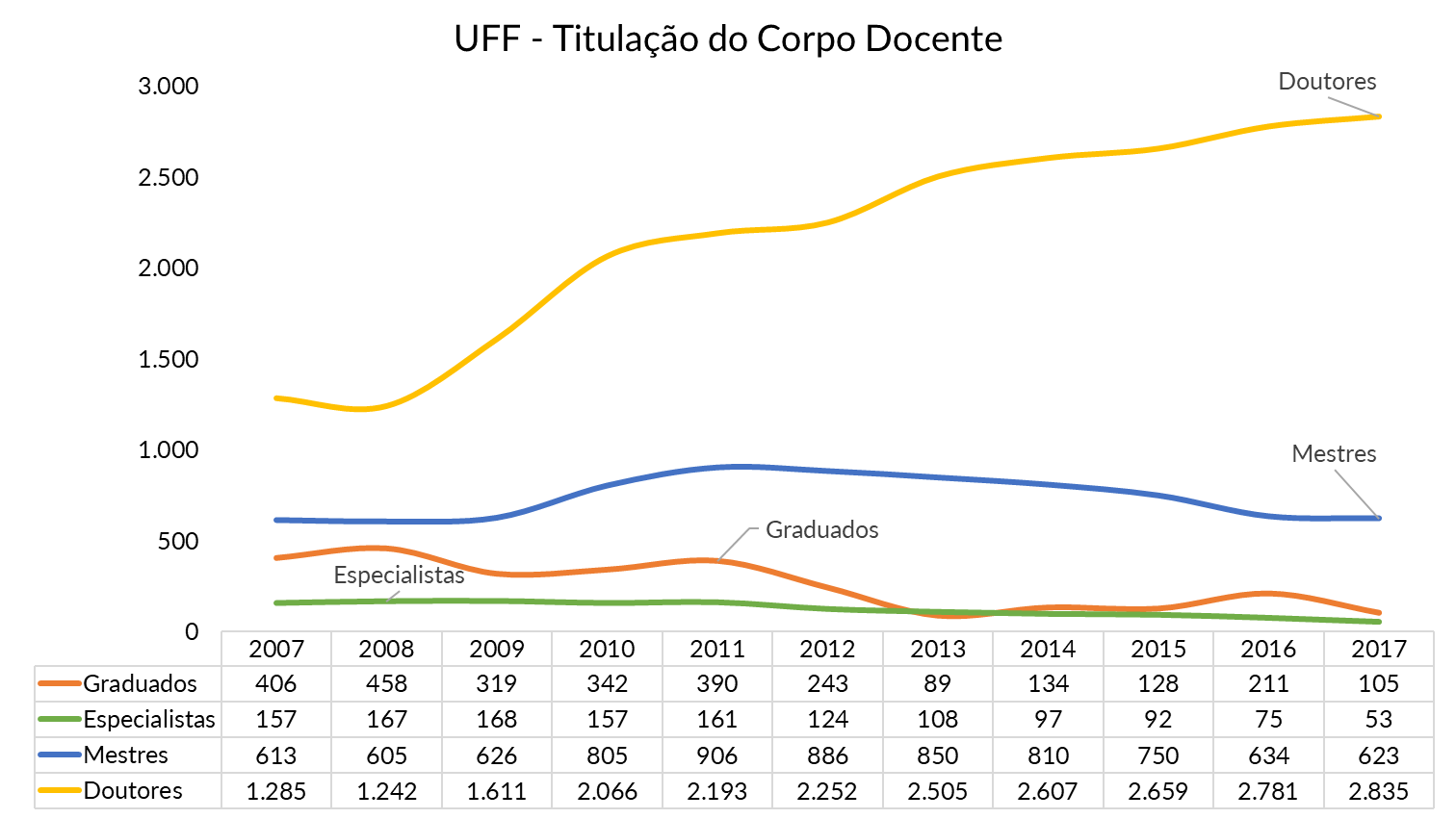 | Série Histórica do Corpo Docente da UFF de 2007 a 2017 |