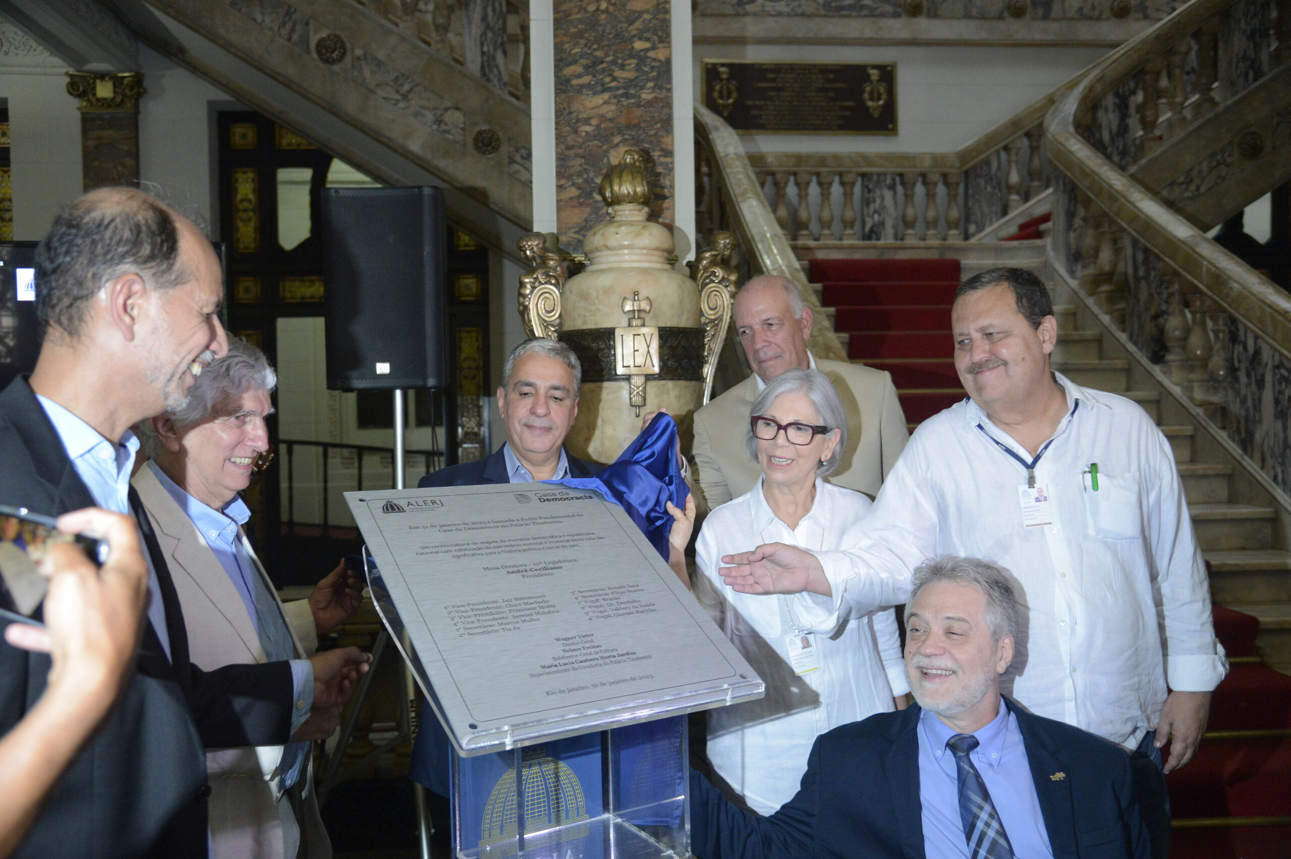 Nesta terça-feira (31), o reitor da UFF, professor Antonio Claudio Lucas da Nóbrega, esteve representando a Universidade no evento de lançamento da Pedra Fundamental da Casa da Democracia, no Palácio Tiradentes, no centro do Rio de Janeiro. O local que sediava a Assembléia Legislativa do Estado do Rio de Janeiro passará a ser um centro cultural.
