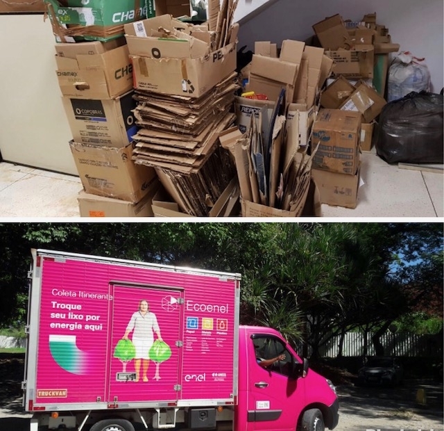 Criado em 2007, o programa social e ambiental da Enel estimula a troca de resíduos recicláveis por bônus na conta de energia nos estados do Rio de Janeiro, Ceará e Goiás, locais em que a companhia atua por meio de suas distribuidoras de energia. Qualquer cliente, pessoa física ou jurídica pode se cadastrar no programa. Para isso, basta apresentar a conta de energia em qualquer ponto de coleta e receber o cartão do Ecoenel. Os endereços dos ecopontos e demais informações sobre o Ecoenel podem ser encontradas no aplicativo Ecoenel, disponível no Rio de Janeiro e no Ceará, na Play Store (Android) e na App Store (IOS).