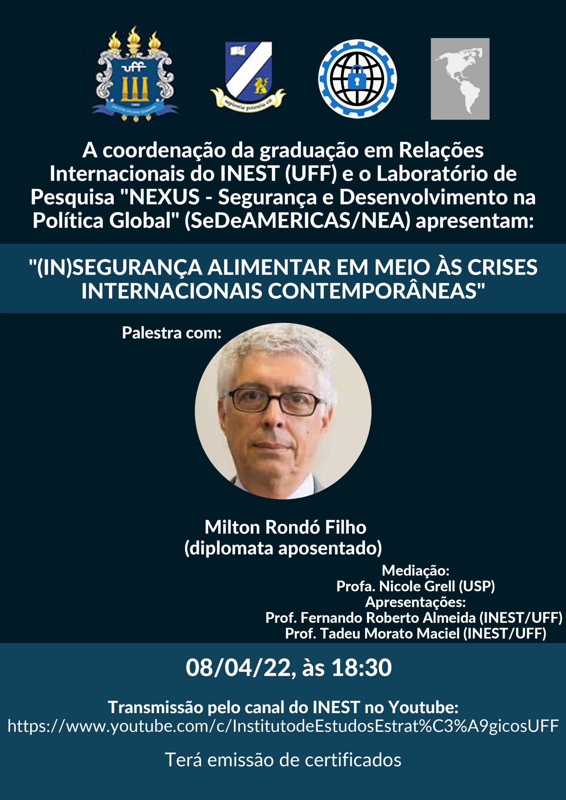 Assista ao evento “(In)segurança alimentar em meio às crises internacionais contemporâneas”, promovido pelo Laboratório Nexus (SeDeAMERICAS/NEA), em conjunto com a coordenação da graduação em RI (INEST/UFF).